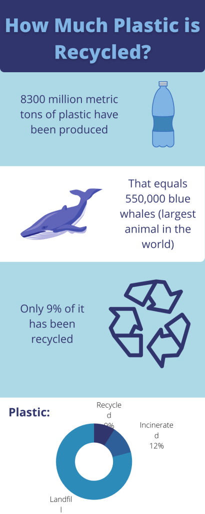 Conservation and sustainability experts hoped that the focus on the straw would ignite the spark that led people to truly reduce their plastic waste – particularly for single use items, like straws or soda bottles, that can’t be reused easily. It was about time too. One study estimated that as of 2015, 8300 million metric tons of virgin plastic had been produced (Geyer et al. 2017). 9% of that has been recycled. An additional 12% has been incinerated, but that’s a topic for another day. Regardless, that leaves 79% of all the plastic every produced ending up in landfills or nature. In 2018, it was obvious that humanity had a bit of a plastic problem. Unfortunately, we still do.